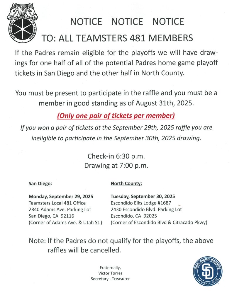 Padres – Playoff Tickets Raffle By Loni September 23, 2025 0 comment Uncategorized Padres Raffle Playoffs 9-29-25Download Share: